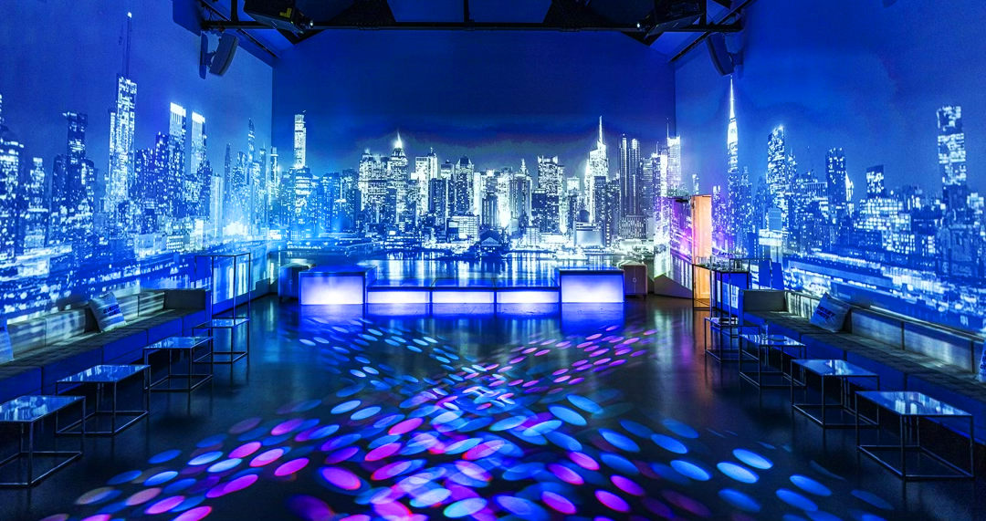 5,000 square feet of open space. 20 foot ceilings. 270 degree projection mapping built into the walls. Street level. Natural light. The kind of room that doesn't ask you to imagine what it could be. It shows you.